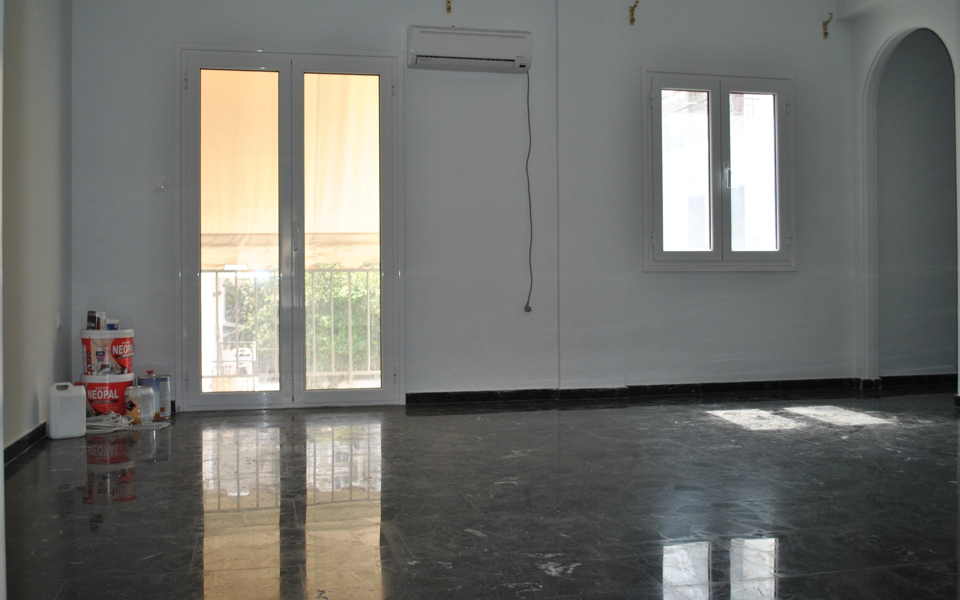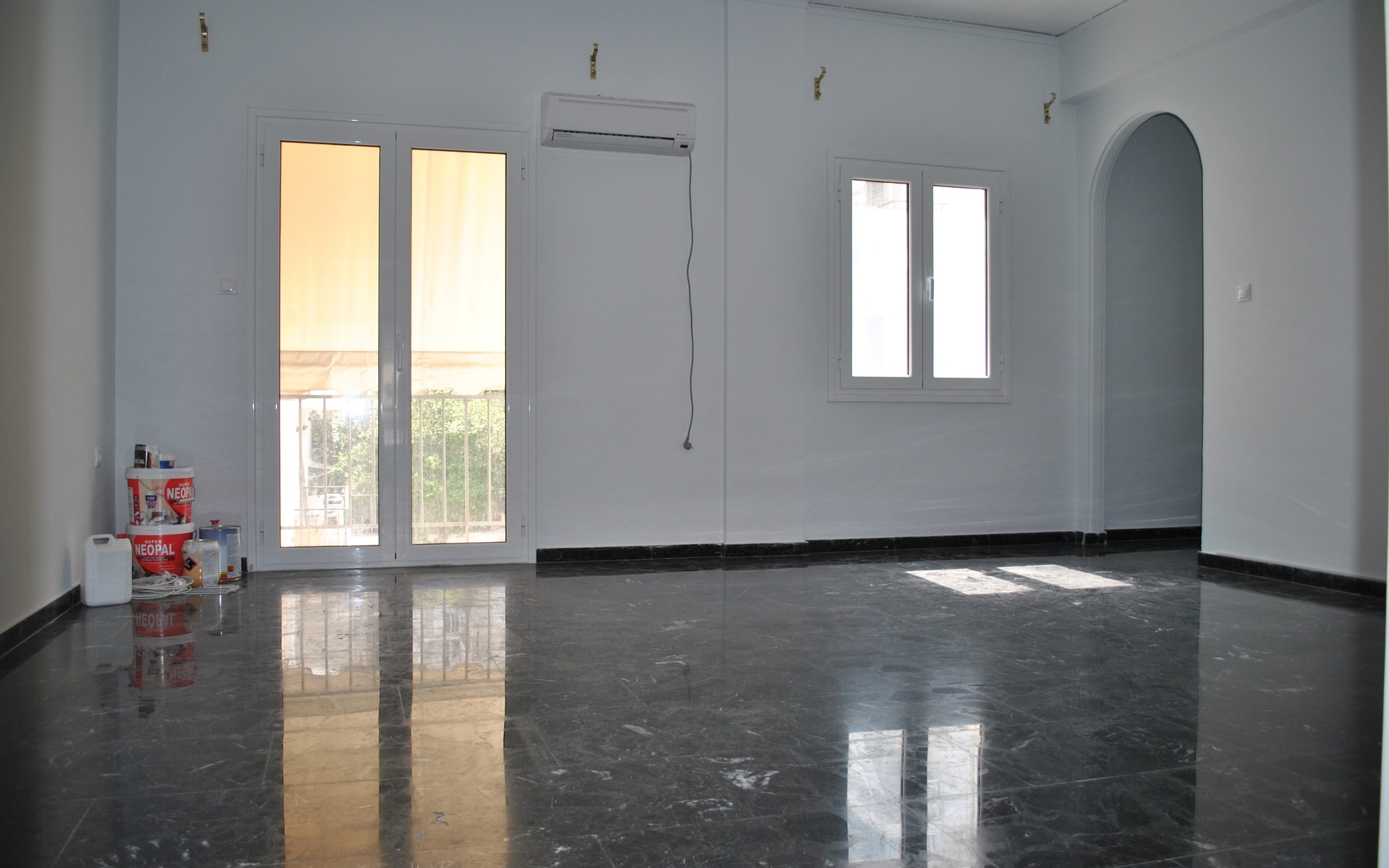 Η κουζίνα του διαμερίσματος έχει ανακαινιστεί πλήρως (ηλεκτρολογικές και υδραυλικές εγκαταστάσεις) και φέρει βακελιτικά ντουλάπια, πλακάκια έχουν τοποθετηθεί τόσο στο δάπεδο όσο και στον καθρέπτη της κουζίνας.