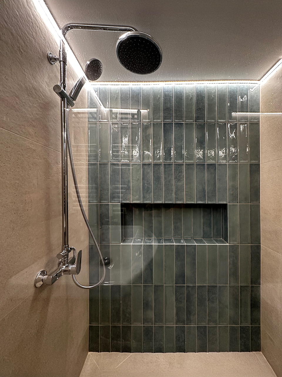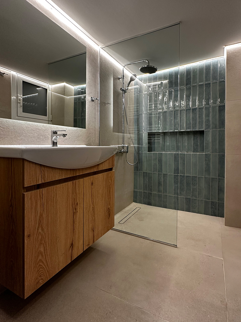 - Κατασκευή νέου μπάνιου (πλακάκια - είδη υγιεινής - έπιπλο μπάνιου - φωτιζόμενος καθρέφτης - δημιουργία ντουζιέρας).